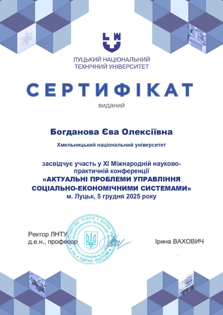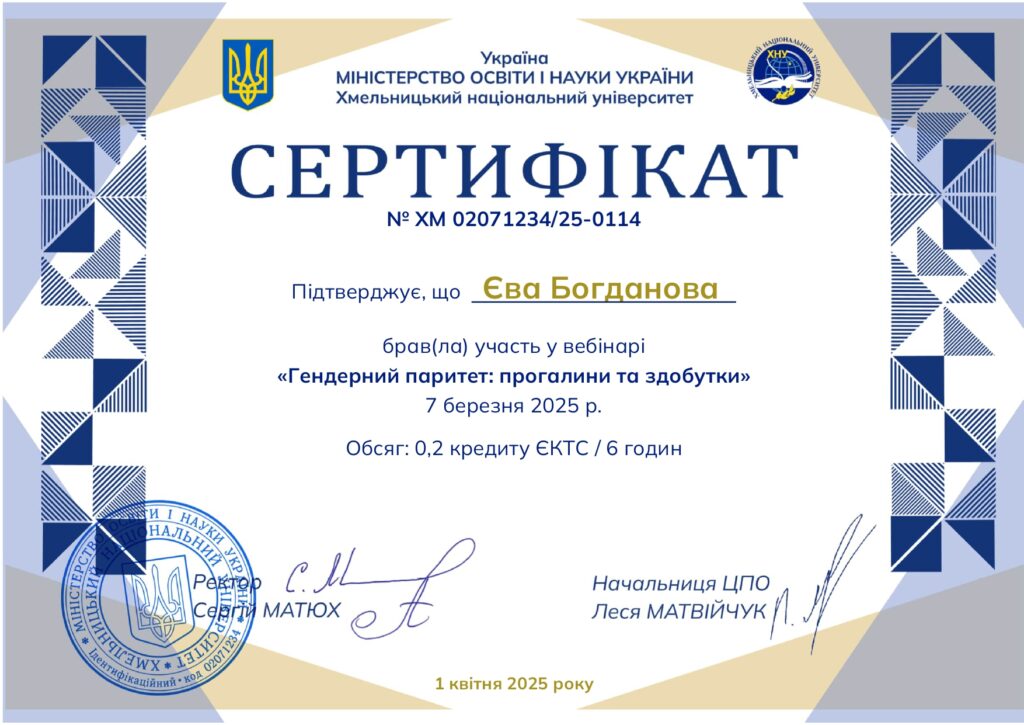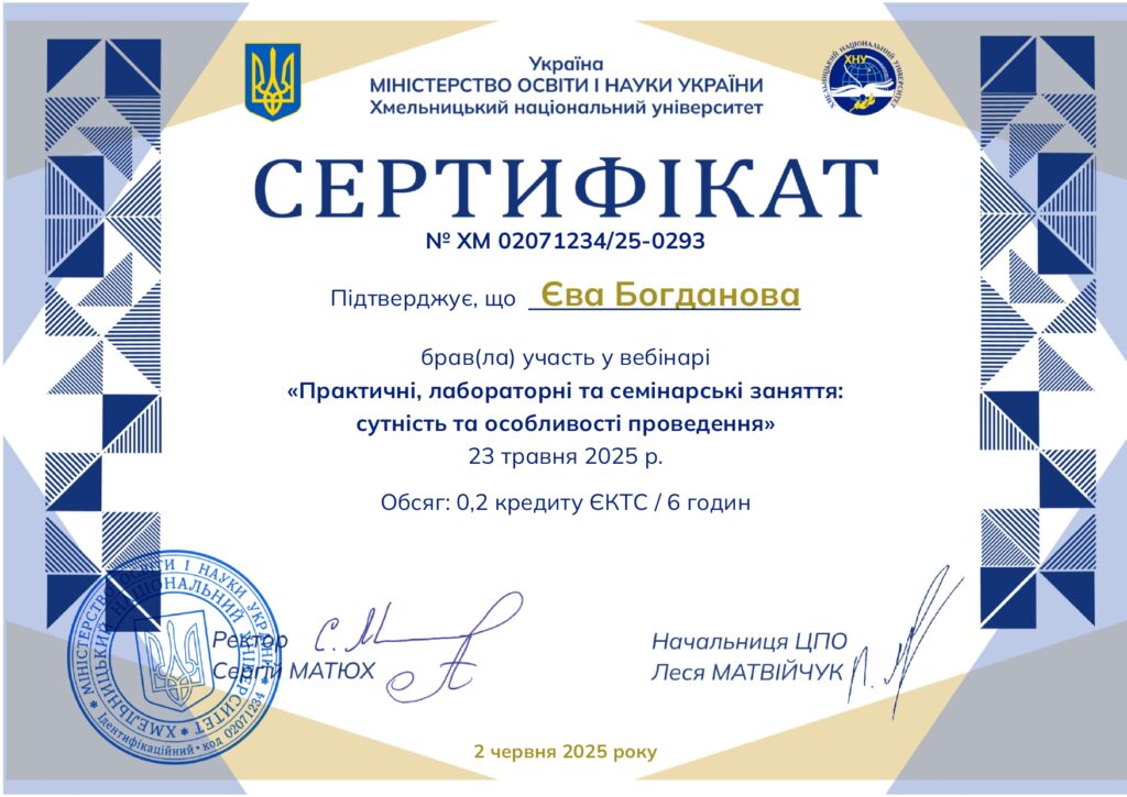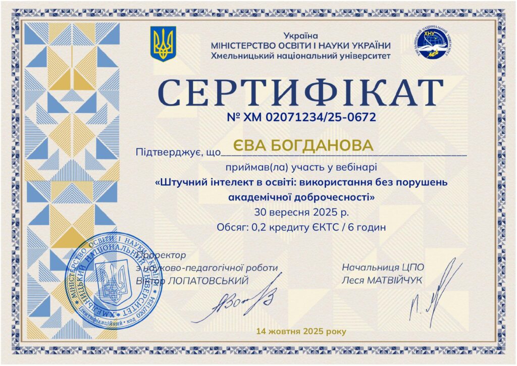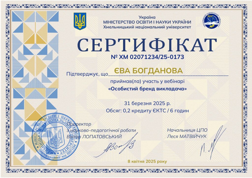 Електронна пошта: bohdanovayeva@khmnu.edu.ua
