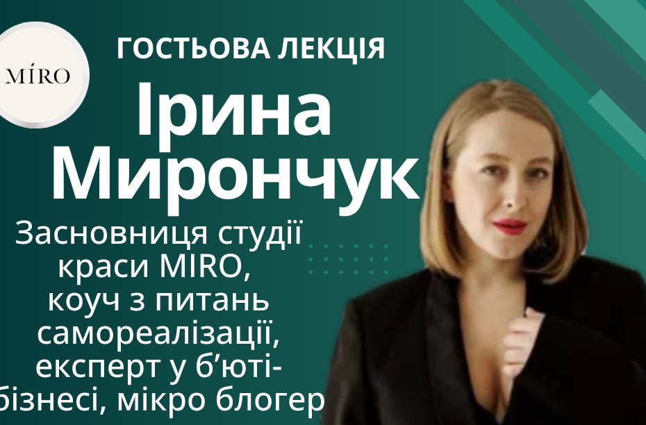 Шановні здобувачі вищої освіти! Запрошуємо вас на гостьову лекцію Ірини Мирончук —засновниці студії краси MIRO, коуча з питань самореалізації, експерта у б’юті-бізнесі та мікроблогера, випускниці кафедри HR-інжиніринг у бізнес-економіці.… Читати далі »ОГОЛОШЕННЯ