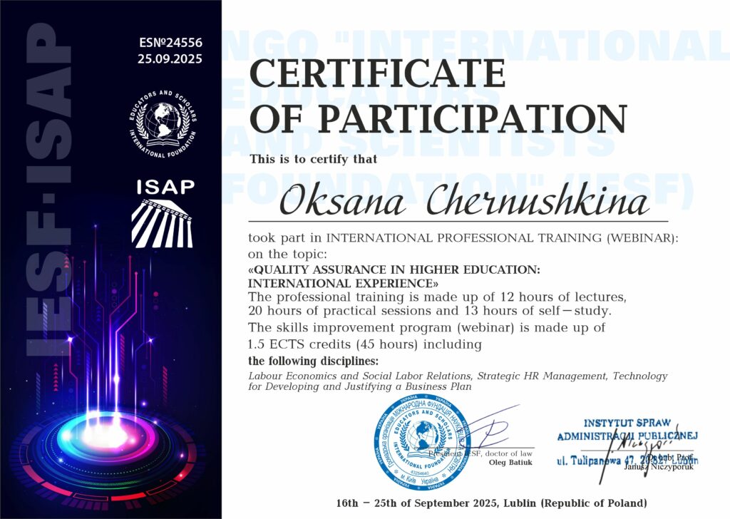 Дисципліни: Управління трудовим потенціалом, Управління соціальним захистом, Основи коучингу, Стратегічне управління людськими ресурсами.