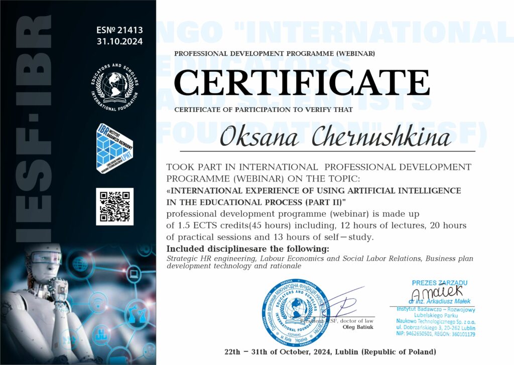 Електронна пошта: chernushkinaoo@khmnu.edu.ua