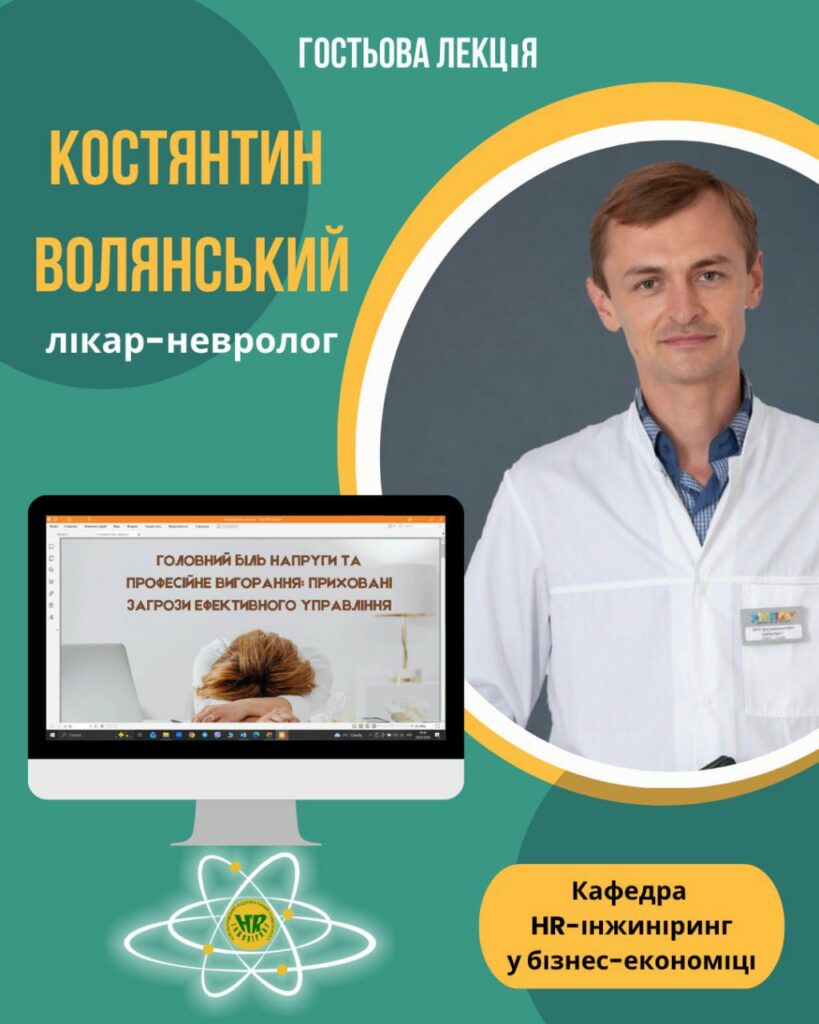 20 квітня 2026 року на кафедрі HR-інжиніринг у бізнес-економіці відбулася гостьова лекція лікаря-невролога Костянтина Волянського на тему: «Головний біль напруги та професійне вигорання: приховані загрози ефективного управління».