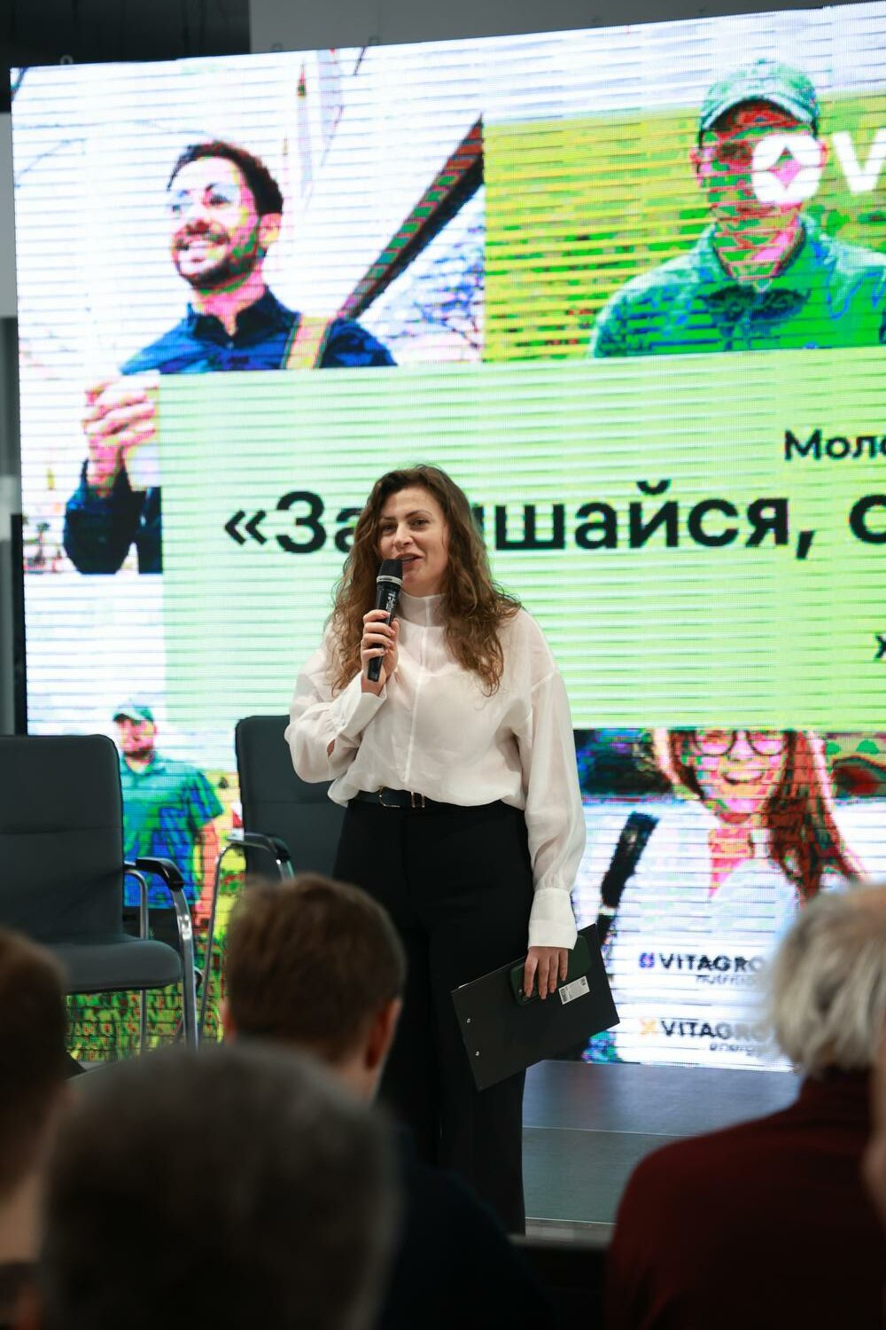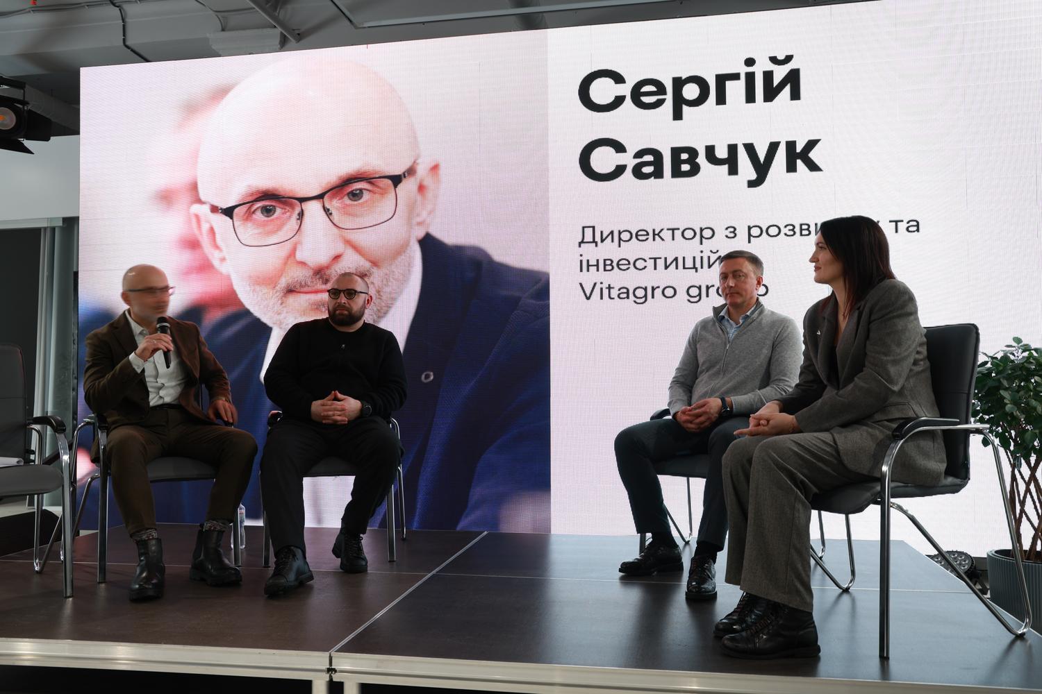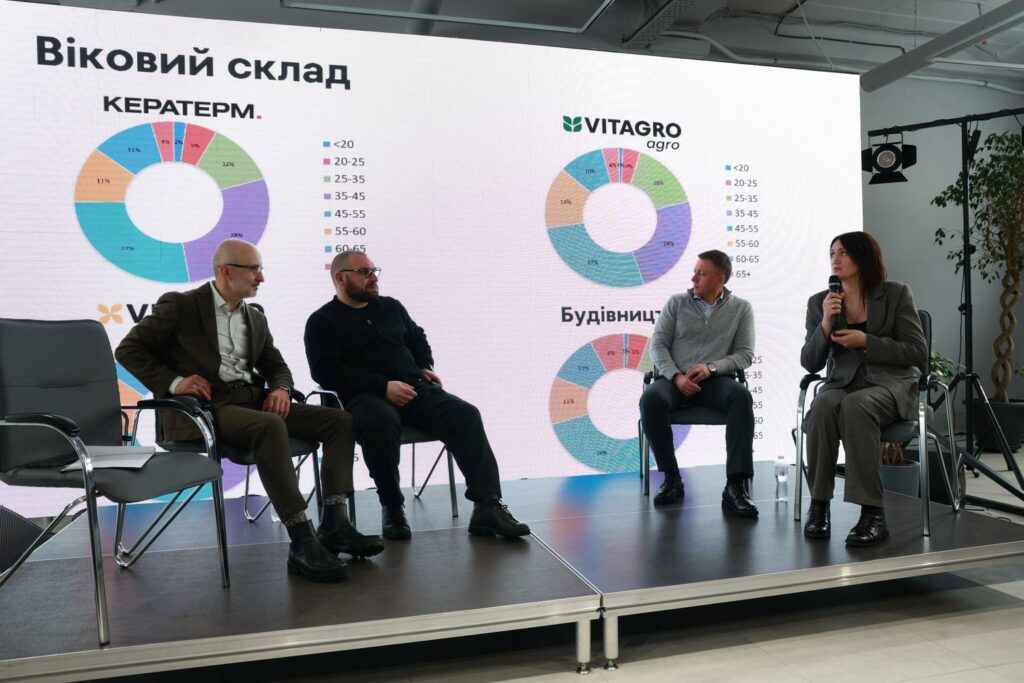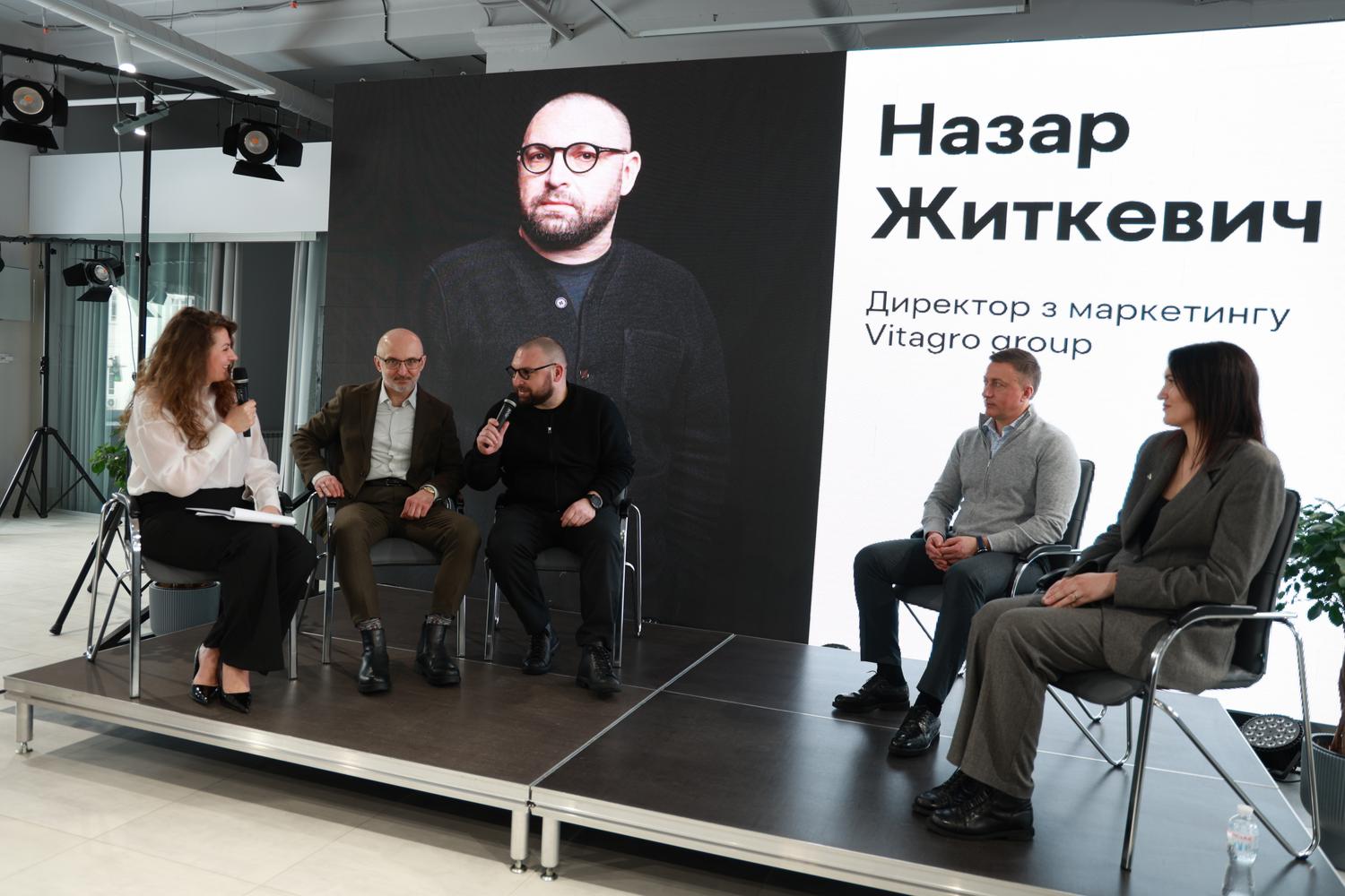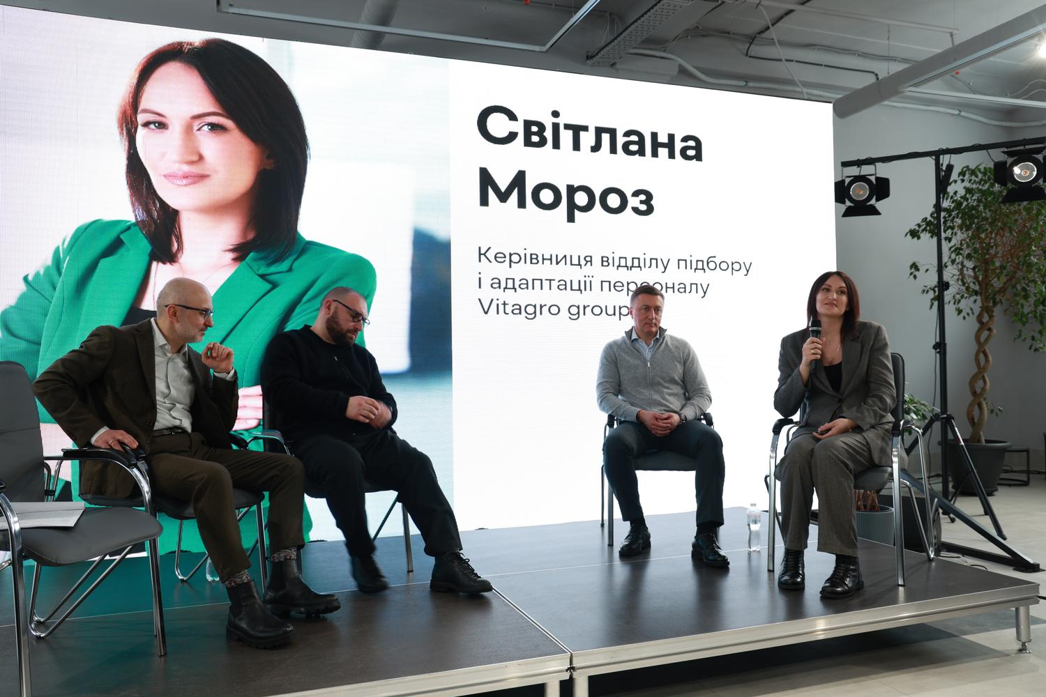 Особливо приємно відзначити, що професійний тон заходу задавала наша колега — к.е.н., доцентка кафедри HR-інжинірингу у бізнес-економіці Євгенія Шелест. Як модераторка панельної дискусії, вона спрямувала діалог із топменеджментом VITAGRO Group у русло обговорення інвестицій у людський капітал, подолання демографічних викликів та побудови стратегій сталого бізнесу.