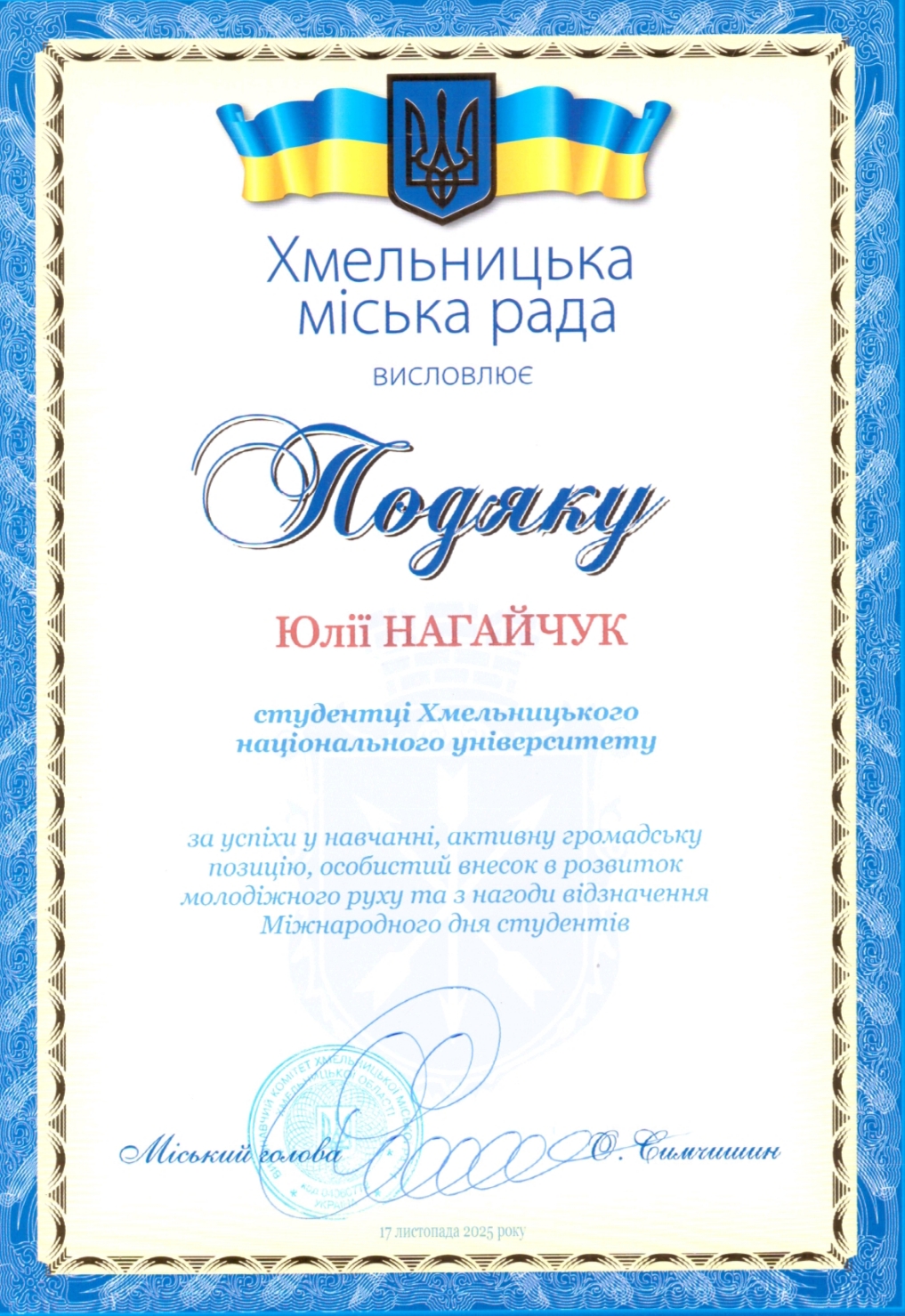 Приємно відзначити, що цього року наші студенти отримали почесні нагороди: