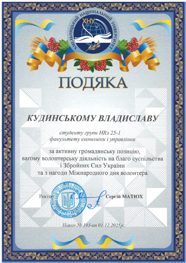 - Кудинський Владислав, студент групи HRмз 25-2, ОПП «HR-інжиніринг в економіці»;