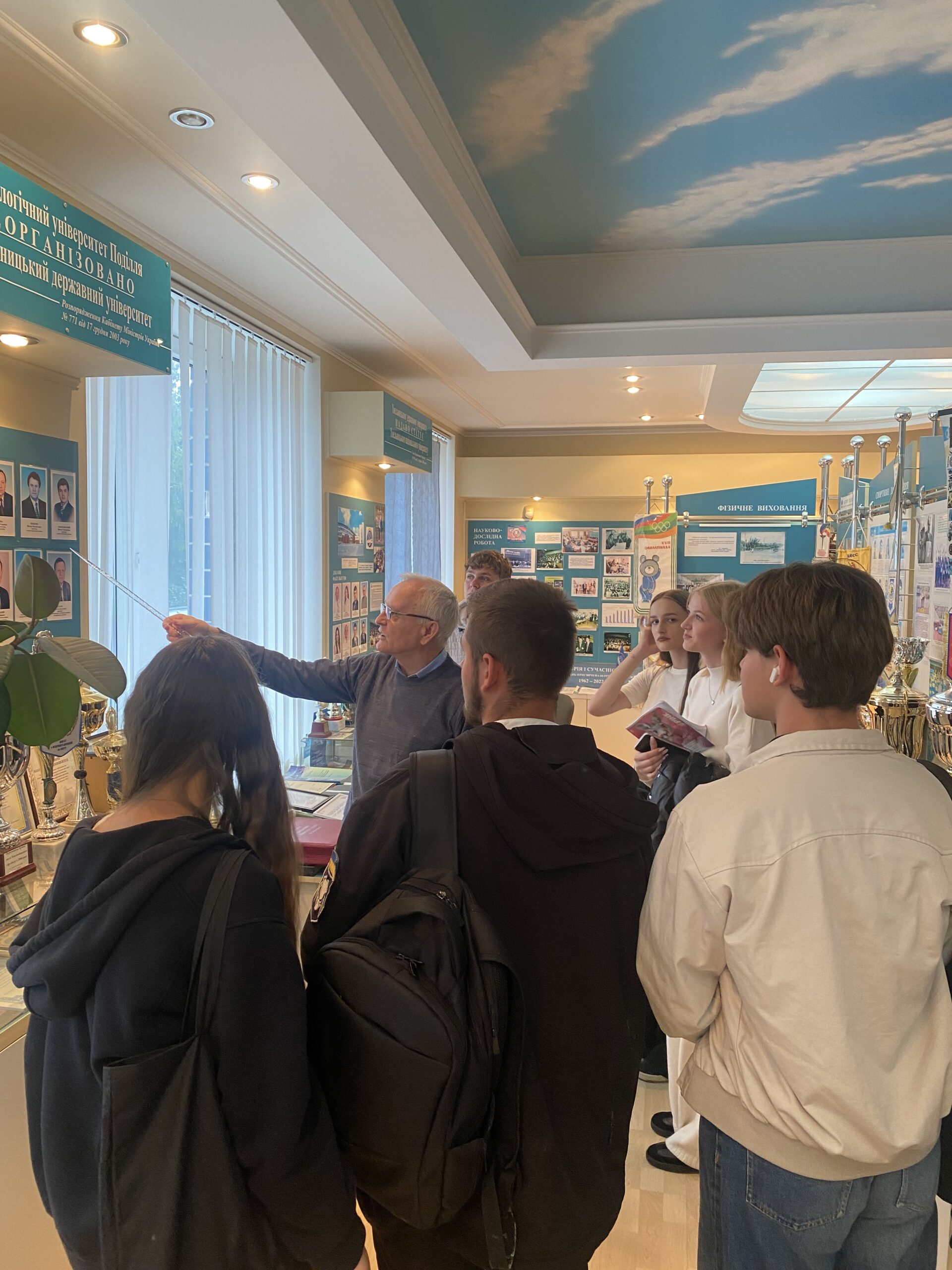 Студенти дізналися про керівництво університету різних років, яке зробило значний внесок у становлення закладу, а також про його численні нагороди й відзнаки, що підтверджують високий рівень освітньої та наукової діяльності. Особливу увагу екскурсовод Петро Костянтинович приділив розповіді про видатних викладачів, науковців та випускників ХНУ, які зробили вагомий внесок у розвиток науки, економіки, техніки та культури України. Екскурсія стала для першокурсників не лише захопливою подорожжю у минуле, а й натхненням для власного професійного розвитку в стінах рідного університету, зокрема під час вивчення дисципліни «Університетська освіта та академічна доброчесність».