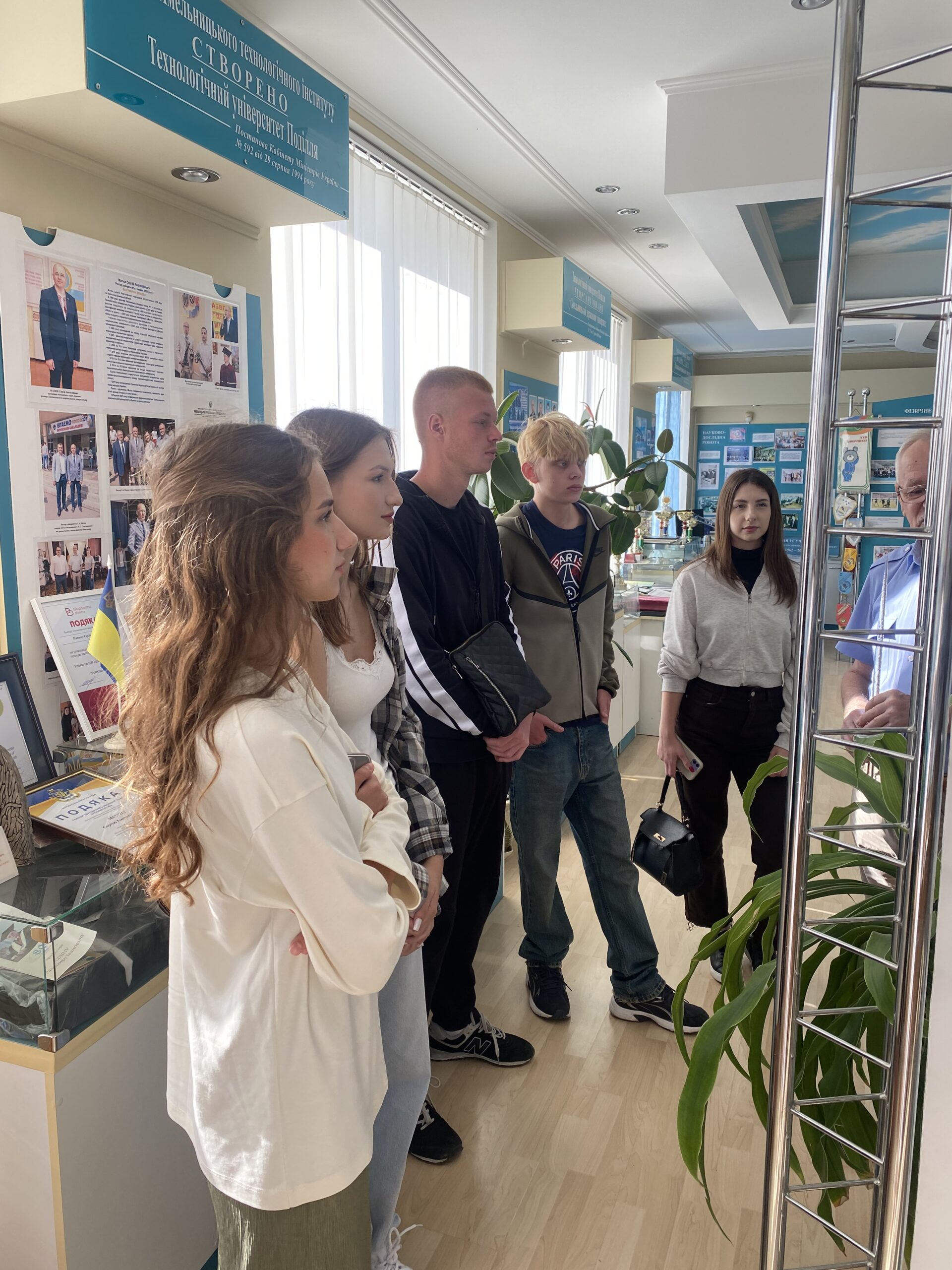 Під час екскурсії першокурсники ознайомилися з історією виникнення ХНУ – від перших кроків як загальнотехнічного факультету Українського заочного політехнічного інституту у 1962 році до статусу потужного національного університету, який сьогодні є сучасним освітнім та науковим центром Поділля.