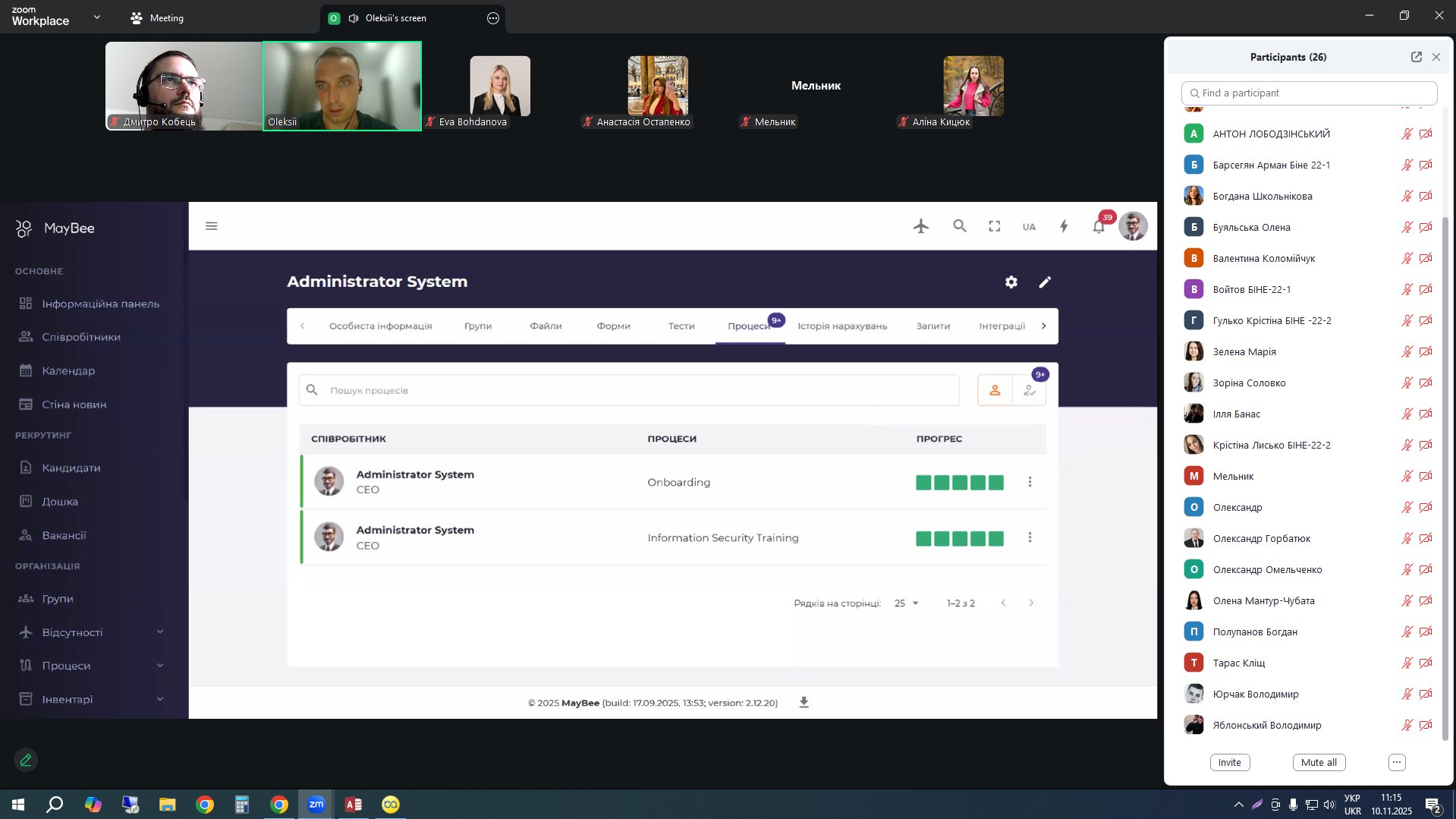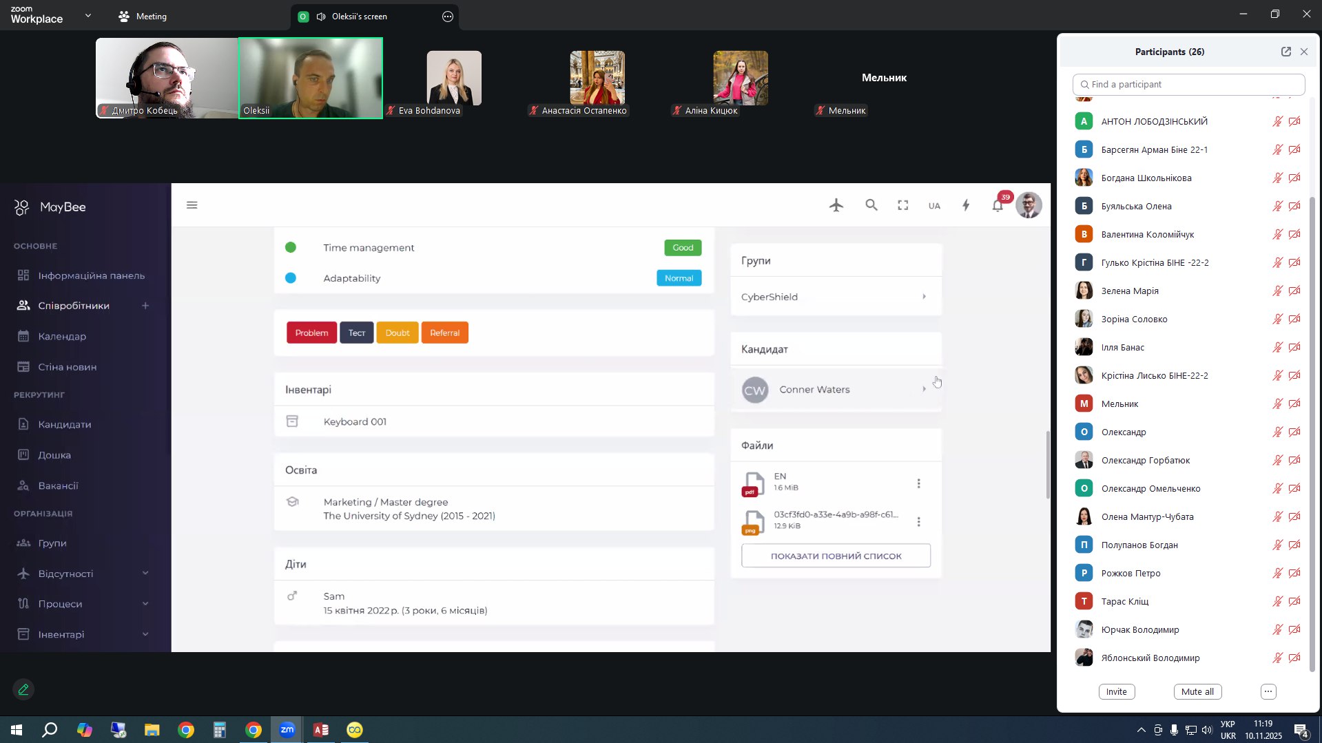 10 листопада 2025 р. в межах вивчення курсу “Інформаційні системи у професійній діяльності” для студентів ОПП HR-інжиніринг у бізнес-економіці бакалаврського рівня відбулася гостьова лекція, присвячена сучасним інформаційним системам в управлінні персоналом. Спікером заходу став Жовчак Олексій Ігорович — Product Owner HRM-системи MayBee System, який має практичний досвід розробки та впровадження цифрових HR-рішень.