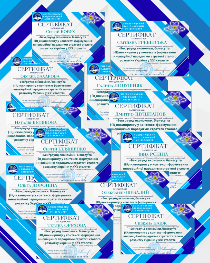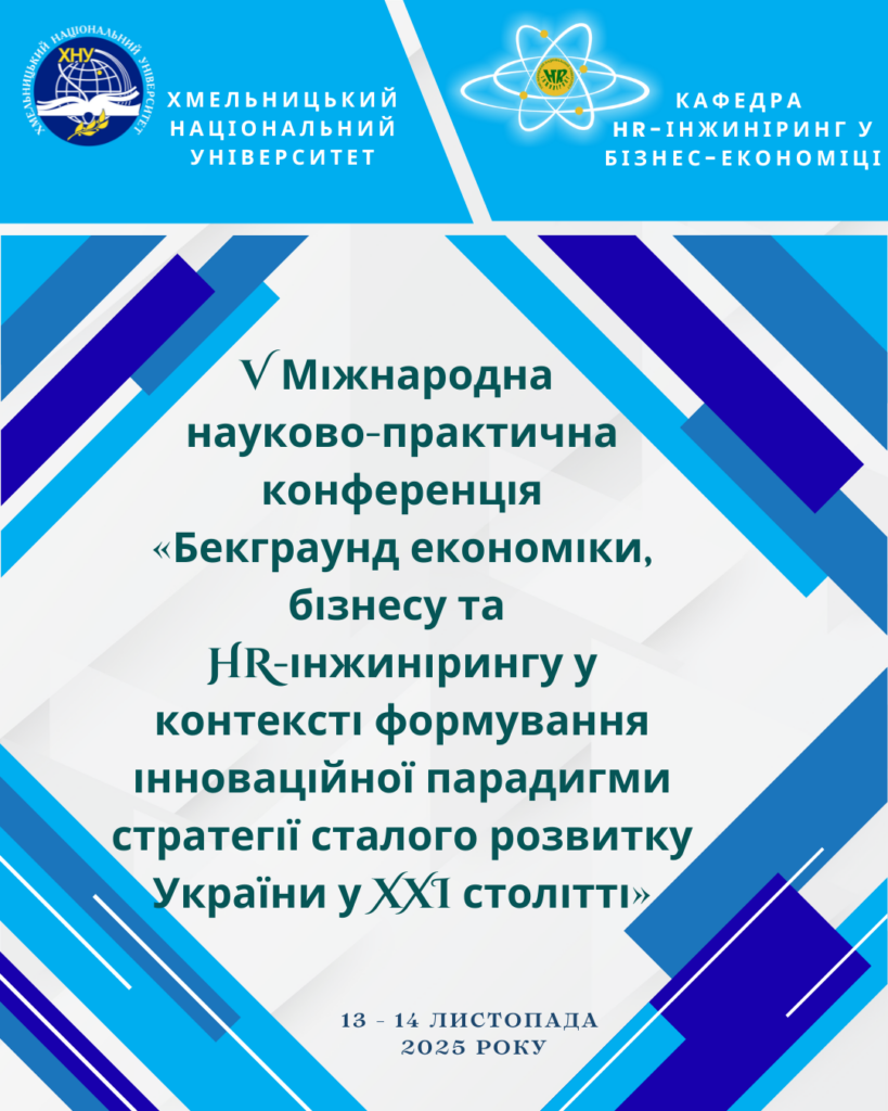 13–14 листопада 2025 року на базі кафедри HR-інжиніринг у бізнес-економіці Хмельницького національного університету успішно пройшла V Міжнародна науково-практична конференція «Бекграунд економіки, бізнесу та HR-інжинірингу у контексті формування інноваційної парадигми стратегії сталого розвитку України у XXI столітті».