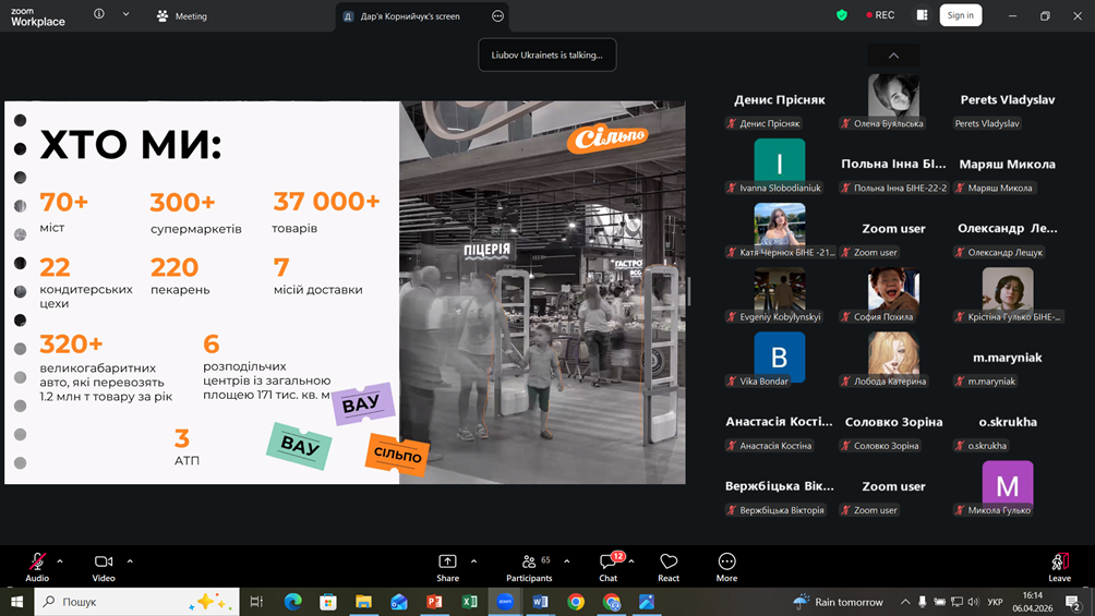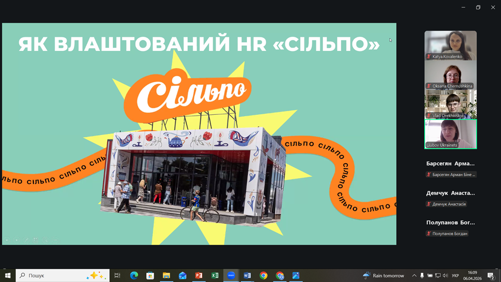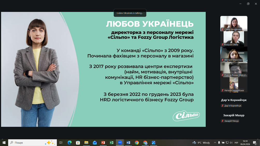 Удосконалення якості підготовки фахівців у сфері HR-контролінгу вимагає синергії між теоретичною базою університету та практичними запитами бізнесу. 6 квітня 2026 року відбулася відкрита гостьова лекція на тему «Як влаштований HR “СІЛЬПО”». Захід був організований для студентів груп БІНЕ-24-1, БІНЕ-24-2 та БІНЕ-24-3 у межах навчальної дисципліни «Контролінг персоналу».