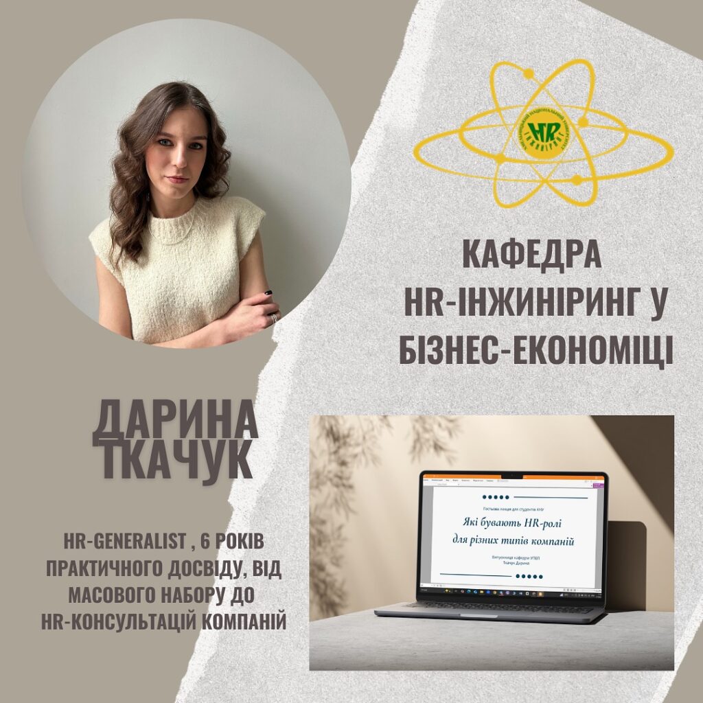 17 вересня 2025 року в рамках дисципліни «HR-інжиніринг» студенти відвідали гостьову лекцію випускниці кафедри HR-інжиніринг у бізнес-економіці Дарини Ткачук.