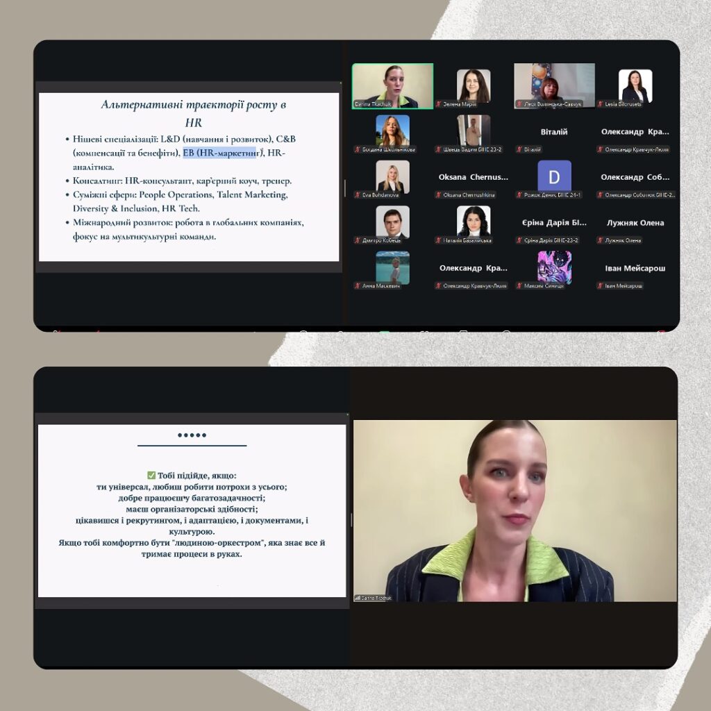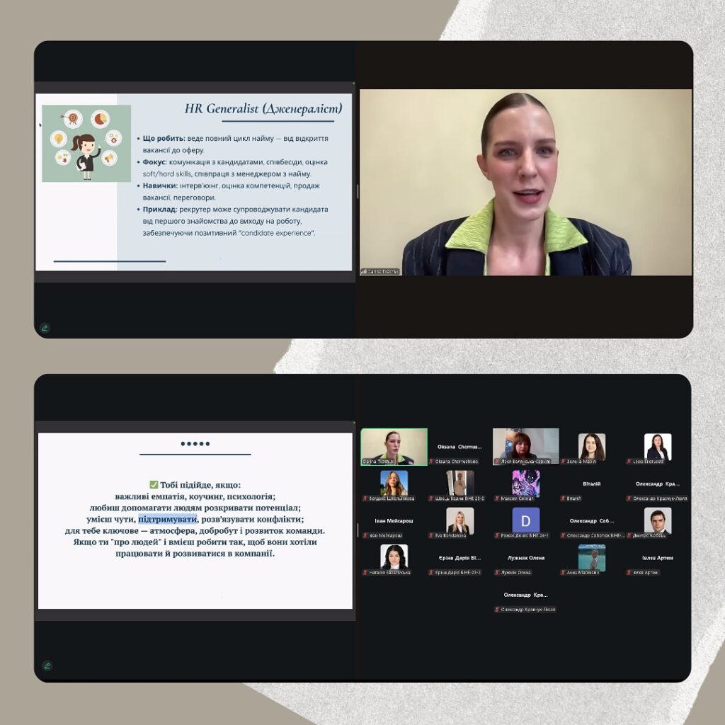 Сьогодні HR — це про людей, культуру та стратегію бізнесу. Такі зустрічі надихають студентів розвивати власні компетенції, досліджувати різні кар’єрні шляхи та впевнено будувати професійну траєкторію, а також мотивують застосовувати отримані знання на практиці ще під час навчання.